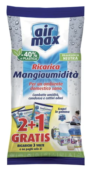 Kit di ricariche universali assorbi-umidità composto da 2 ricariche + 1 omaggio, per un totale di 1,35 kg. I sali contenuti assorbono efficacemente l’umidità presente nell’aria, aiutando a prevenire muffa, condensa e cattivi odori in ambienti chiusi.