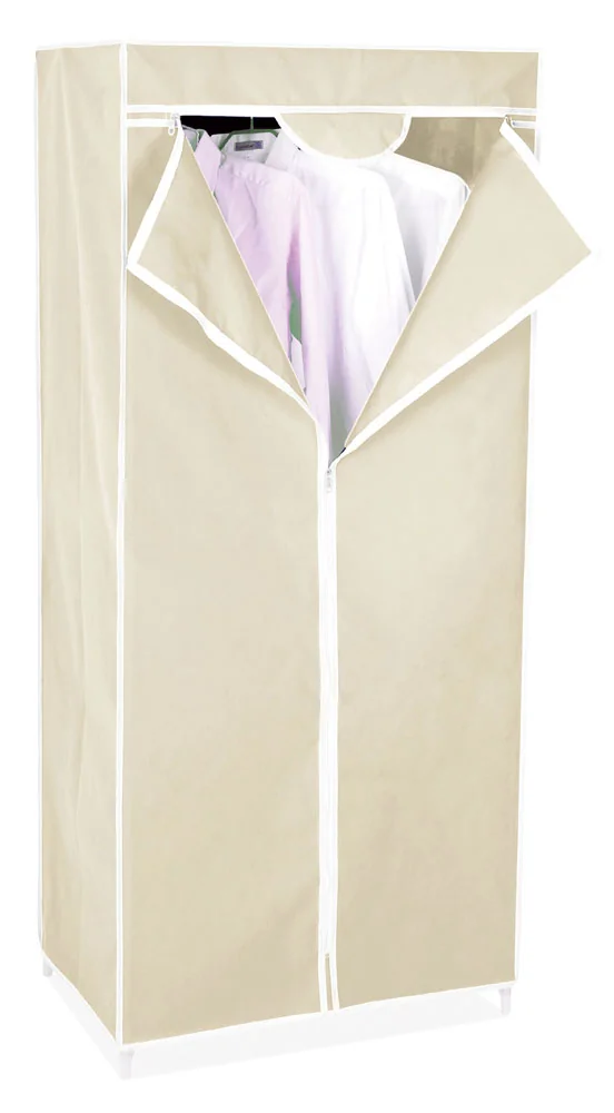 Armadio appendiabiti in TNT (tessuto non tessuto), progettato per offrire praticità, leggerezza e protezione degli indumenti. Struttura robusta in tubi di acciaio Ø 14 mm con verniciatura a polveri, giunzioni in ABS e rivestimento in TNT.