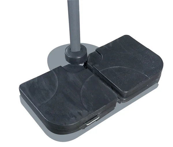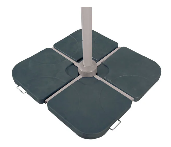 Il Set di 4 Basi Riempibili è la soluzione più versatile e intelligente per zavorrare il tuo ombrellone senza lo sforzo di trasportare pesanti mattonelle in cemento. Realizzate in resina ad alta resistenza, queste basi sono progettate per incastrarsi perfettamente sulla struttura a croce, offrendo una tenuta sicura e un design pulito.
