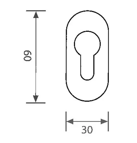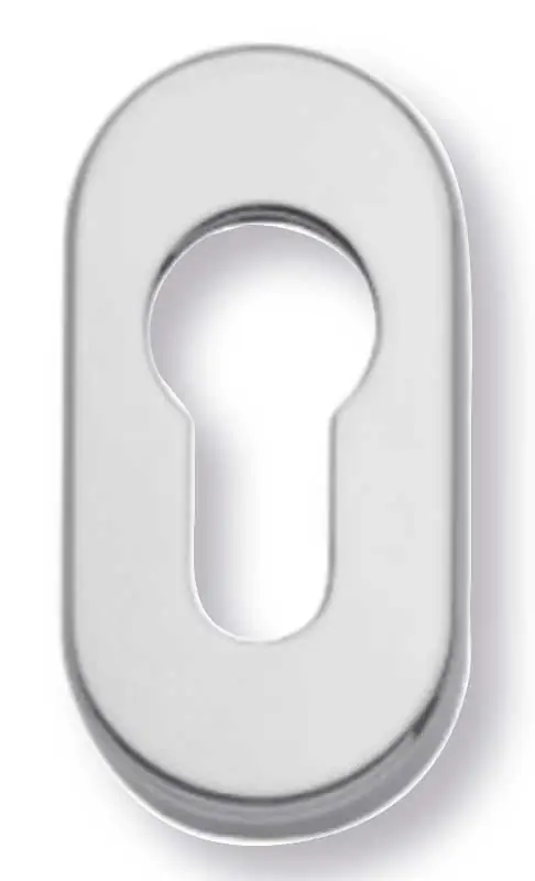 La bocchetta ovale 60×30 mm con foro cilindro è un elemento di finitura utilizzato per rifinire l’apertura destinata al cilindro europeo su porte d’ingresso o porte interne dotate di serratura a profilo europeo. Consente una protezione estetica e funzionale dell’area attorno al cilindro, garantendo un aspetto ordinato e coordinato con la ferramenta della porta.