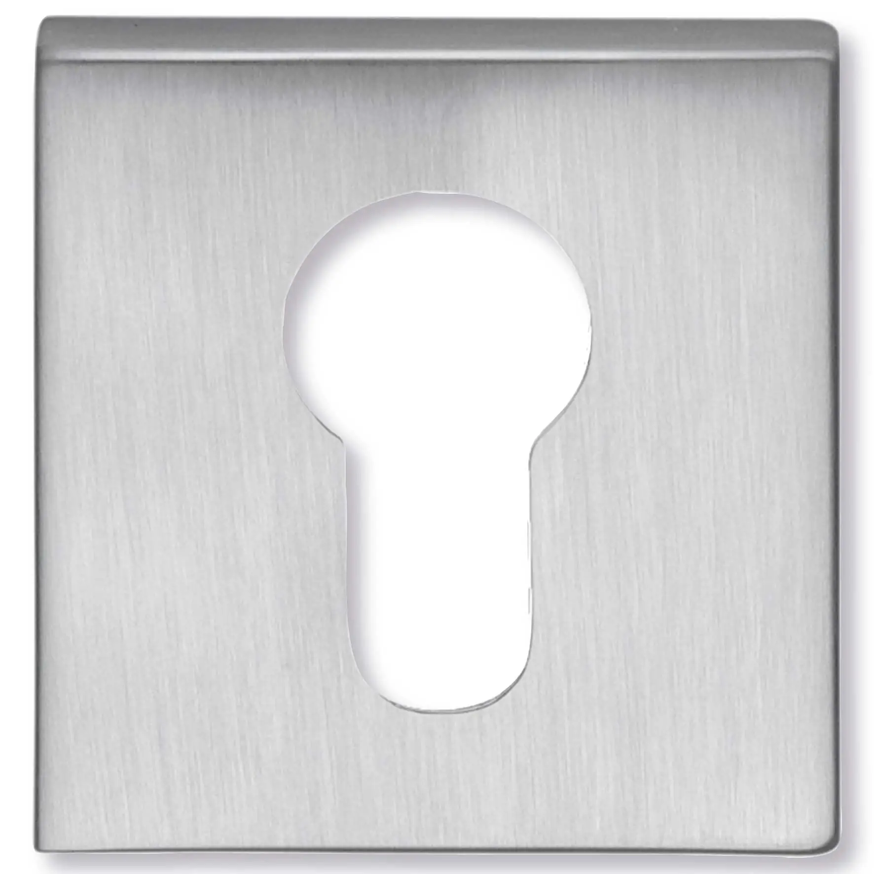 Bocchetta quadrata per cilindro europeo, progettata per porte interne ed esterne, realizzata con materiali resistenti e finitura estetica moderna. Ideale per completare l’installazione di serrature con cilindro a profilo europeo.