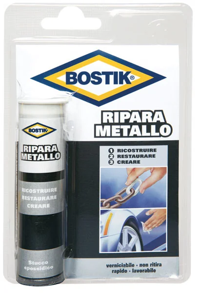 Bostik Ripara Metalli è uno stucco epossidico bicomponente in stick, formulato per indurire rapidamente e garantire riparazioni robuste, durature e resistenti anche in condizioni critiche. Una volta miscelato, il prodotto sviluppa un’elevata durezza meccanica, aderendo perfettamente ai metalli e a molte superfici rigide.