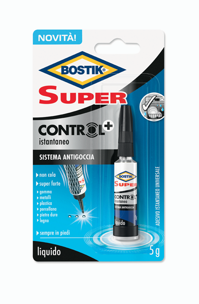 Bostik Super Control è un adesivo cianoacrilato ad alte prestazioni, caratterizzato da presa ultra rapida e resistenza elevata. La sua formulazione a viscosità controllata, abbinata allo speciale sistema antigoccia, consente un’applicazione estremamente precisa: la colla viene erogata in modo pulito e dosato, evitando fuoriuscite indesiderate e facilitando l’incollaggio anche su superfici piccole o irregolari.