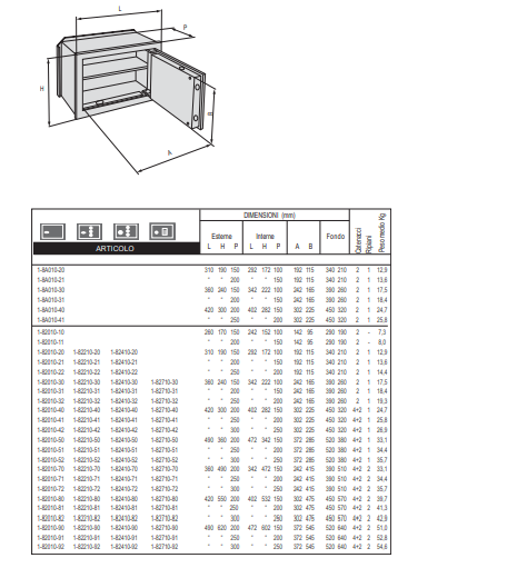 Luce Interna: LED integrato che si attiva all’apertura dello sportello per visualizzare chiaramente il contenuto.