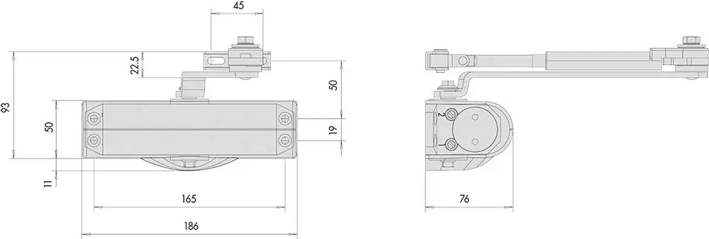 (L’arresto è sul braccio e non utilizzabile su porte tagliafuoco.)