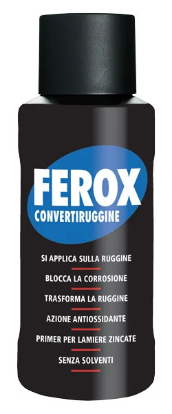Ferox è un convertitore di ruggine ad alta efficacia, progettato per bloccare il processo corrosivo e trasformare la ruggine in una superficie stabile e protetta. La sua formulazione a base acquosa, priva di solventi, svolge un’azione antiossidante e crea un fondo ideale per successive verniciature, fungendo anche da primer per lamiere zincate.