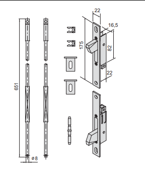 Coppia di aste diametro 8 mm per la trasmissione del movimento.