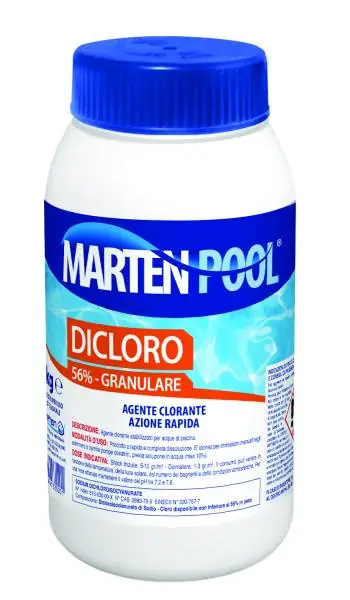 Il Dicloro al 56% è il disinfettante a rapido scioglimento per eccellenza. Grazie alla sua formulazione granulare altamente solubile, agisce istantaneamente per eliminare batteri, funghi e materia organica. È lo strumento principale per il trattamento d’urto (clorazione shock), necessario all’apertura della piscina, dopo temporali, in caso di acqua verde o dopo un utilizzo intensivo da parte di molti bagnanti.