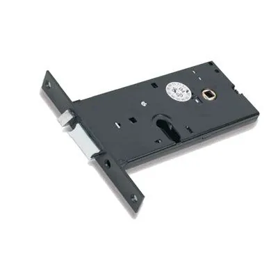 Elettroserratura progettata per porte in alluminio, con meccanismo da fascia che include scrocco e pistone di ricarica reversibili, permettendo l’installazione sia su porte con apertura a destra che a sinistra.