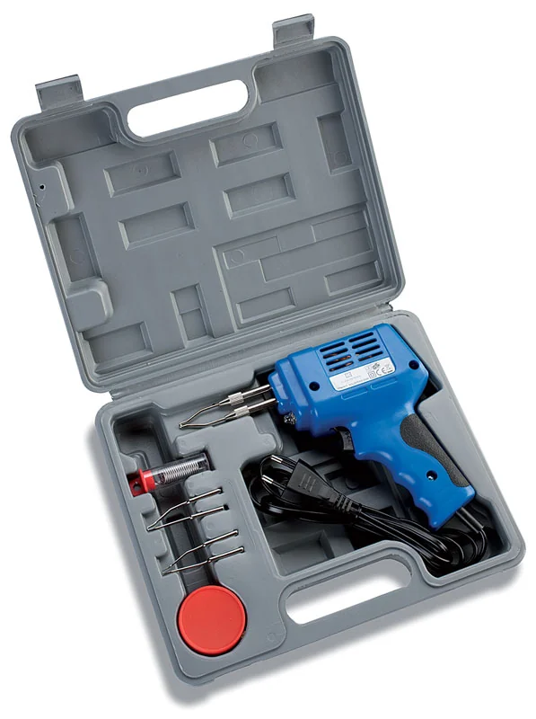 Questo kit è progettato per chi necessita di uno strumento potente e immediato. Il saldatore a pistola da 100 Watt raggiunge la temperatura di esercizio in pochi secondi, rendendolo ideale per piccoli cablaggi, riparazioni elettroniche e hobbistica. La pratica valigetta permette di mantenere tutto l’occorrente in ordine e protetto.