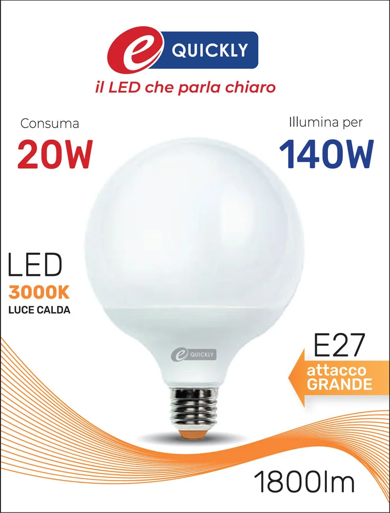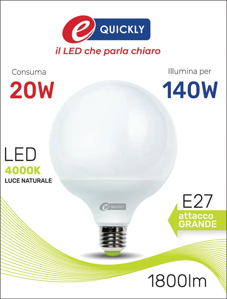La lampada globo G120 LED E27 da 20W è la scelta ideale per chi desidera una luce potente, di qualità e a basso consumo, perfetta per tutti gli ambienti interni.