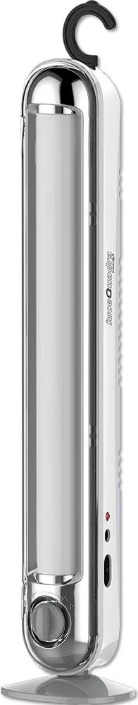 Lampada LED Emergenza “Vega” 15W – 30 LED SMD, luminosità regolabile 56–384 lm, autonomia 3–20 h. Ricaricabile con batterie 4V 1600 mAh, funzione luce di emergenza, gancio a scomparsa, asola per parete e base per appoggio.