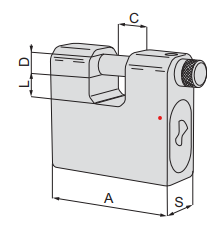 A differenza dei comuni lucchetti, questo modello monta un cilindro di sicurezza con sistema a 10 perni, protetto da un piastrino in acciaio carbonitrurato che funge da scudo contro il trapano.