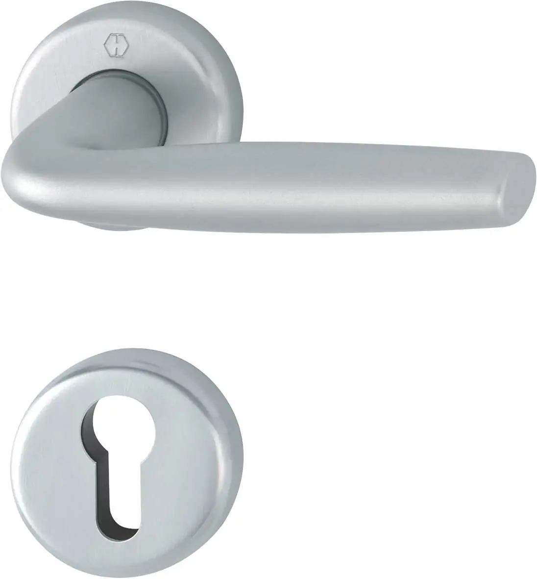 Guarnitura completa per porte interne, composta da coppia di maniglie Milos con rosetta e bocchetta HOPPE in alluminio, progettata per garantire durata, funzionalità e un design elegante e moderno. La versione fisso/girevole è dotata di molle di richiamo, che assicurano il ritorno fluido della maniglia dopo l’uso, e di anelli di guida esenti da manutenzione, garantendo un movimento costante e senza usura. La sottocostruzione in resina conferisce maggiore stabilità e resistenza, aumentando la longevità della guarnitura anche in utilizzi frequenti.