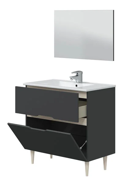 1 cassetto e 1 anta a ribalta per riporre prodotti e accessori da bagno