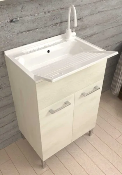 Tipologia: Mobile lavatoio completo con vasca, ideale per lavanderie domestiche o ambienti di servizio.