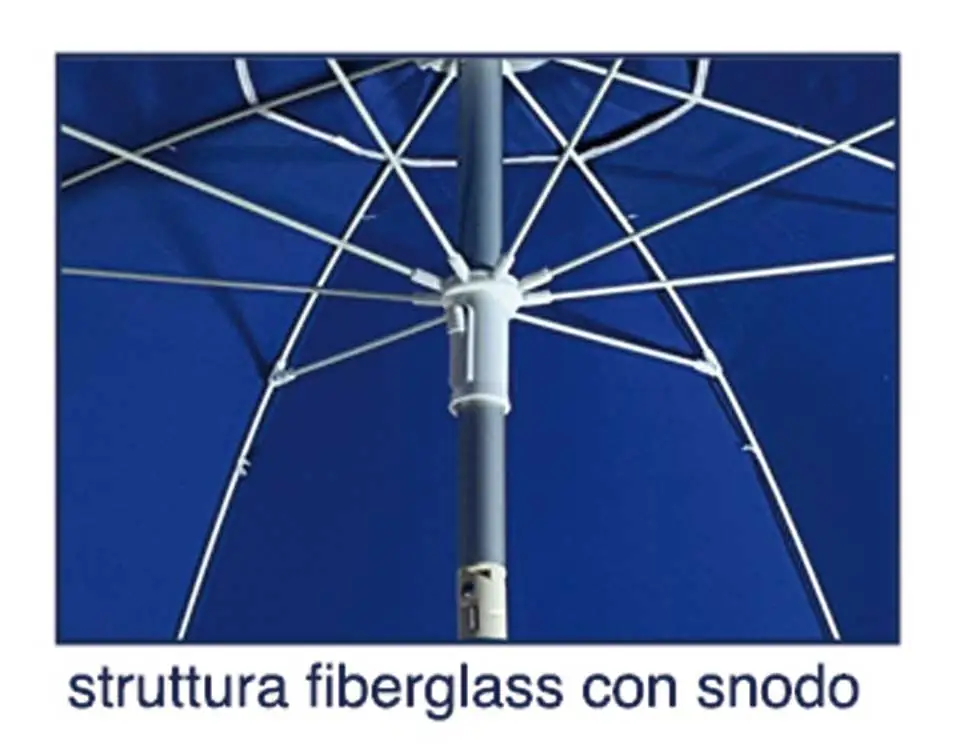 Il segreto della resistenza di questo ombrellone risiede nelle sue 8 stecche in fiberglass da 5 mm. A differenza delle classiche stecche in ferro che tendono ad arrugginirsi o a deformarsi permanentemente sotto pressione, la fibra di vetro è un materiale a “memoria di forma”: