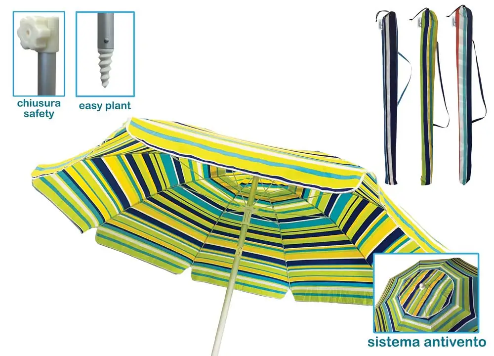 Mentre i modelli più pesanti puntano sulla rigidità estrema, questa versione sfrutta la flessibilità del fiberglass da 5 mm. Le 8 stecche permettono all’ombrellone di essere più agile nel trasporto e rapido nel montaggio, mantenendo comunque una resistenza di gran lunga superiore ai classici ombrelloni in ferro che si arrugginiscono o si piegano.