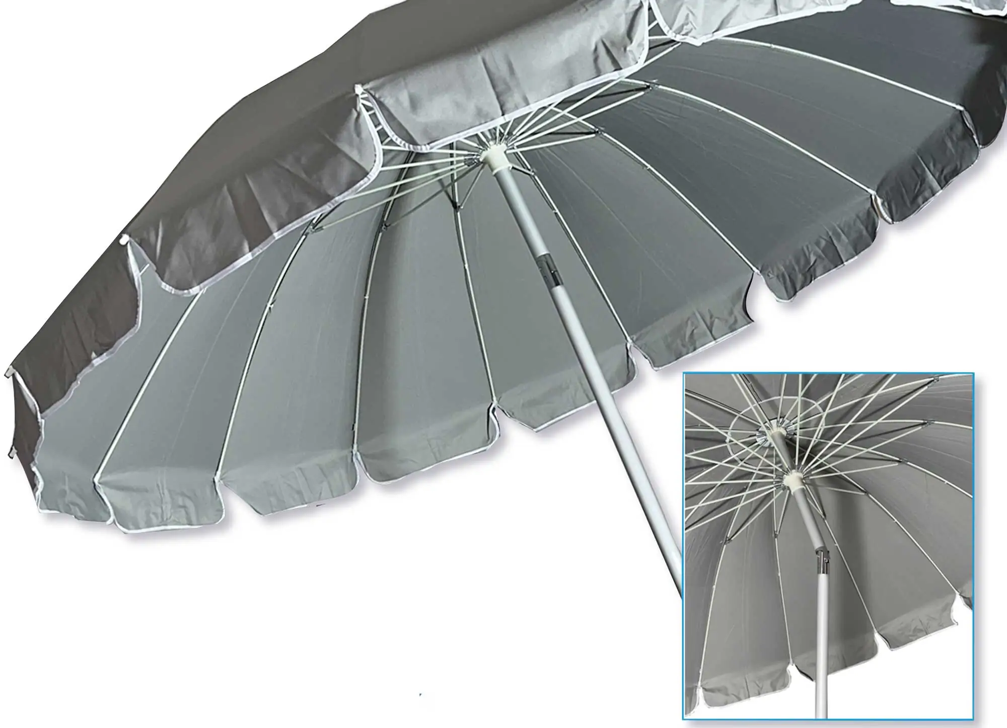Stabilità Raddoppiata: Le 16 stecche (il doppio rispetto agli ombrelloni standard) garantiscono una tensione del tessuto perfetta, evitando che la calotta sbatta rumorosamente o si ribalti.
