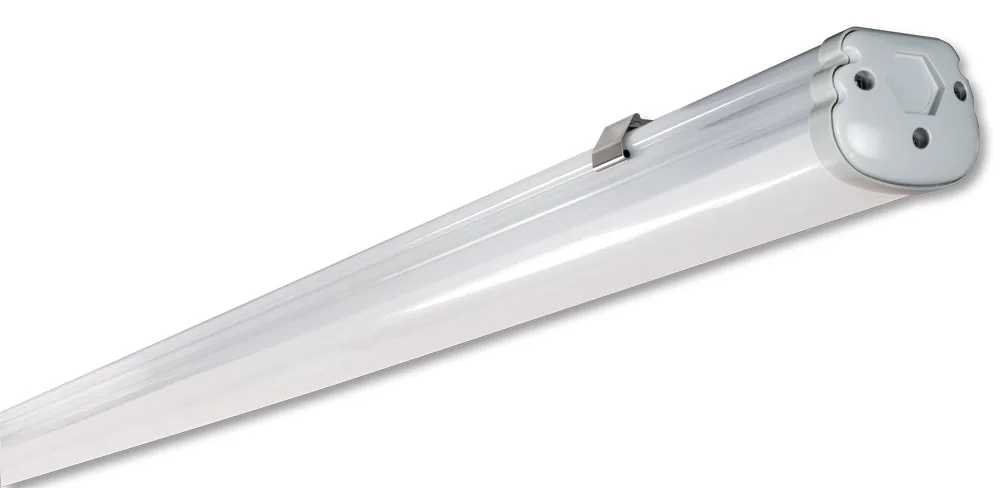 Lo schermo opalino in policarbonato assicura un’ottimale distribuzione della luce riducendo i fenomeni di abbagliamento, mentre le testate calettate sul corpo centrale garantiscono solidità e affidabilità nel tempo. L’installazione è estremamente rapida grazie alla morsettiera integrata all’interno del pressatubo.