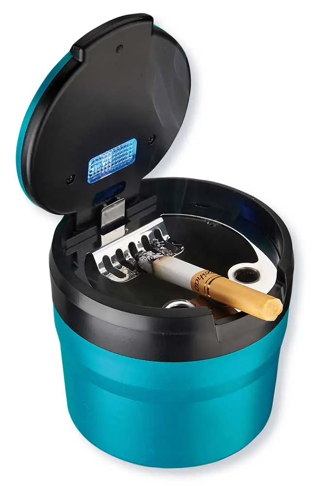 Il modello Champ Round si distingue per le sue linee morbide e la forma cilindrica perfetta, progettata per scivolare senza sforzo in qualsiasi portabicchiere standard. È la soluzione ideale per mantenere l’abitacolo pulito, eliminando la cenere volante e sigillando gli odori sgradevoli in un contenitore elegante.