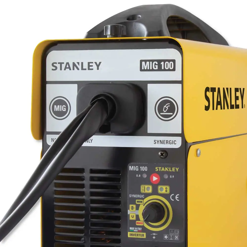 La Stanley MIG100 è una saldatrice a filo continuo senza gas (NO GAS), ideale per interventi di manutenzione, riparazioni leggere e lavori hobbistici e semi-professionali. Utilizza filo animato (flux core) da 0,9 mm, che permette di ottenere una buona penetrazione e un’uniforme qualità di saldatura senza necessità di bombole di gas.