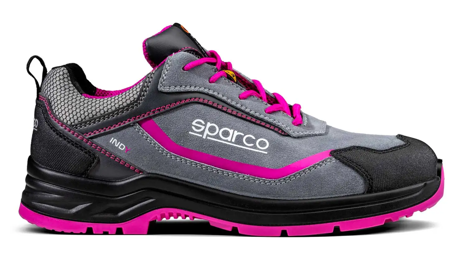 Calzatura Sparco Danica S3 metal free. In pelle scamosciata idrorepellente, soletta rimovibile in fibra tessile anti perforazione, puntale in vetroresina