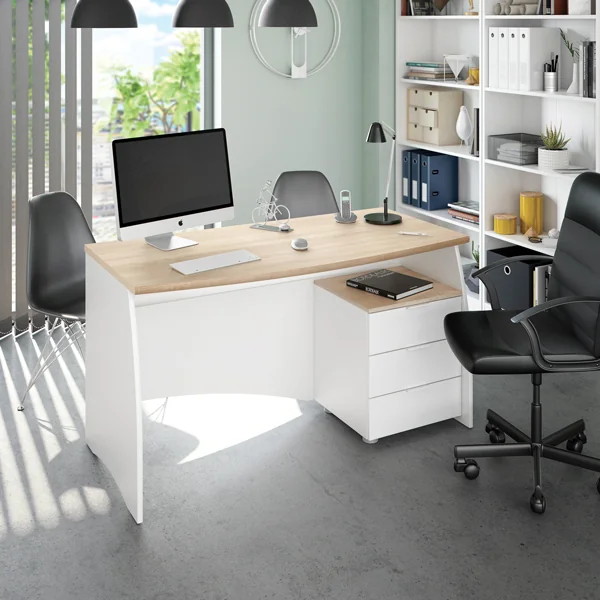 Scrivania 3 Cassetti Estil – Bianco e Rovere Canadian (138x67x75h)