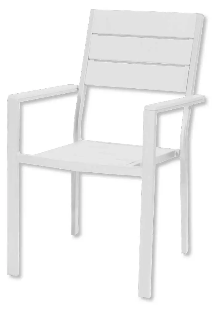 Il punto di forza di questa sedia è l’uso intelligente dei materiali: il fascino visivo del legno è riprodotto fedelmente dall’HDPE (Polietilene ad alta densità), eliminando per sempre la necessità di carteggiare, oliare o proteggere le doghe dalle intemperie.