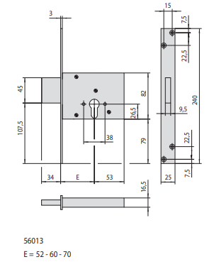 Serratura da Infilare CISA per Cilindro Europeo – H 82 mm (56013-50)