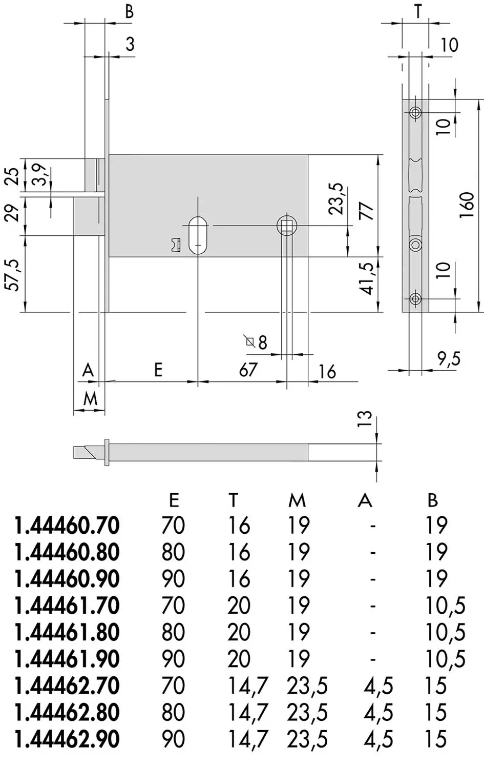 La serratura è realizzata in 3 misure di entrata, per consentire l’installazione su porte con diverse caratteristiche costruttive: