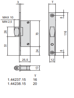 Serratura da Infilare CISA per Montanti – Art. 44237.15.0 (Ambidestra)