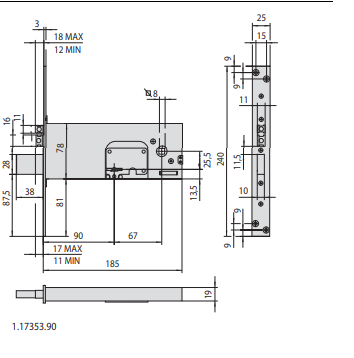 Serratura Doppia Mappa CISA per Fasce (17353) – Entrata 90 mm
