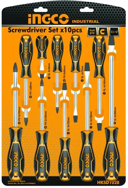 Set professionale da 10 cacciaviti INGCO a croce (PH) e a taglio (SL), studiato per garantire versatilità e affidabilità in lavori di manutenzione, montaggio e meccanica. Gli utensili sono realizzati in acciaio Cromo-Vanadio (Cr-V), che assicura elevata resistenza all’usura e alla torsione. L’impugnatura ergonomica di nuovo design offre una presa sicura e confortevole, mentre la lama arrotondata migliora la robustezza e la durata nel tempo. Il set è appendibile, ideale per una pratica organizzazione in officina o in negozio.