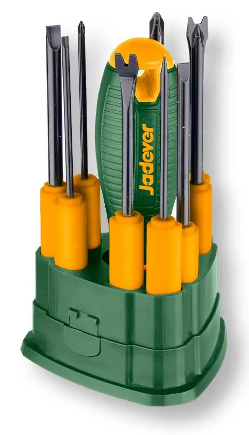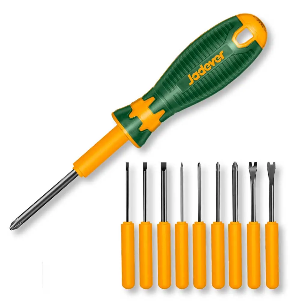 Il set comprende nove utensili intercambiabili progettati per offrire versatilità, precisione e durata, ideali per uso domestico, professionale e lavori di manutenzione. Grazie all’impugnatura intercambiabile, un singolo manico permette di utilizzare tutti gli accessori inclusi, ottimizzando spazio e praticità.