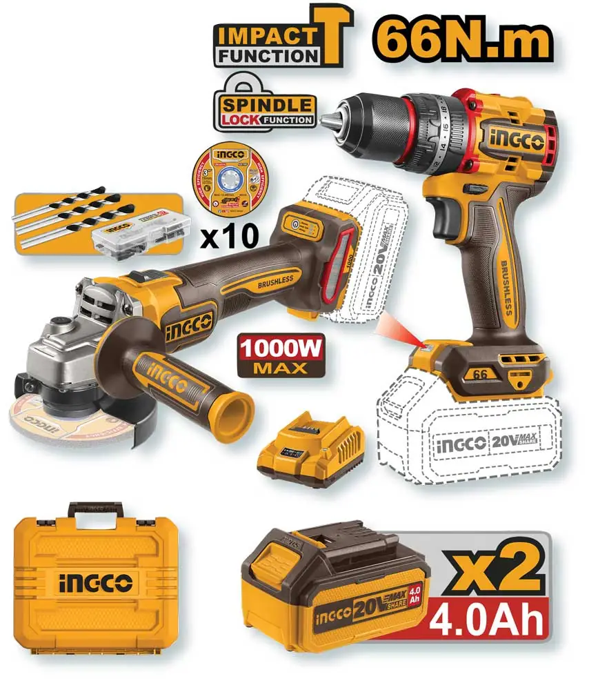 Il Set Trapano + Smerigliatrice P20S INGCO è perfetto per chi cerca potenza, versatilità e praticità, con strumenti professionali pronti all’uso e accessori completi per ogni tipo di lavoro.