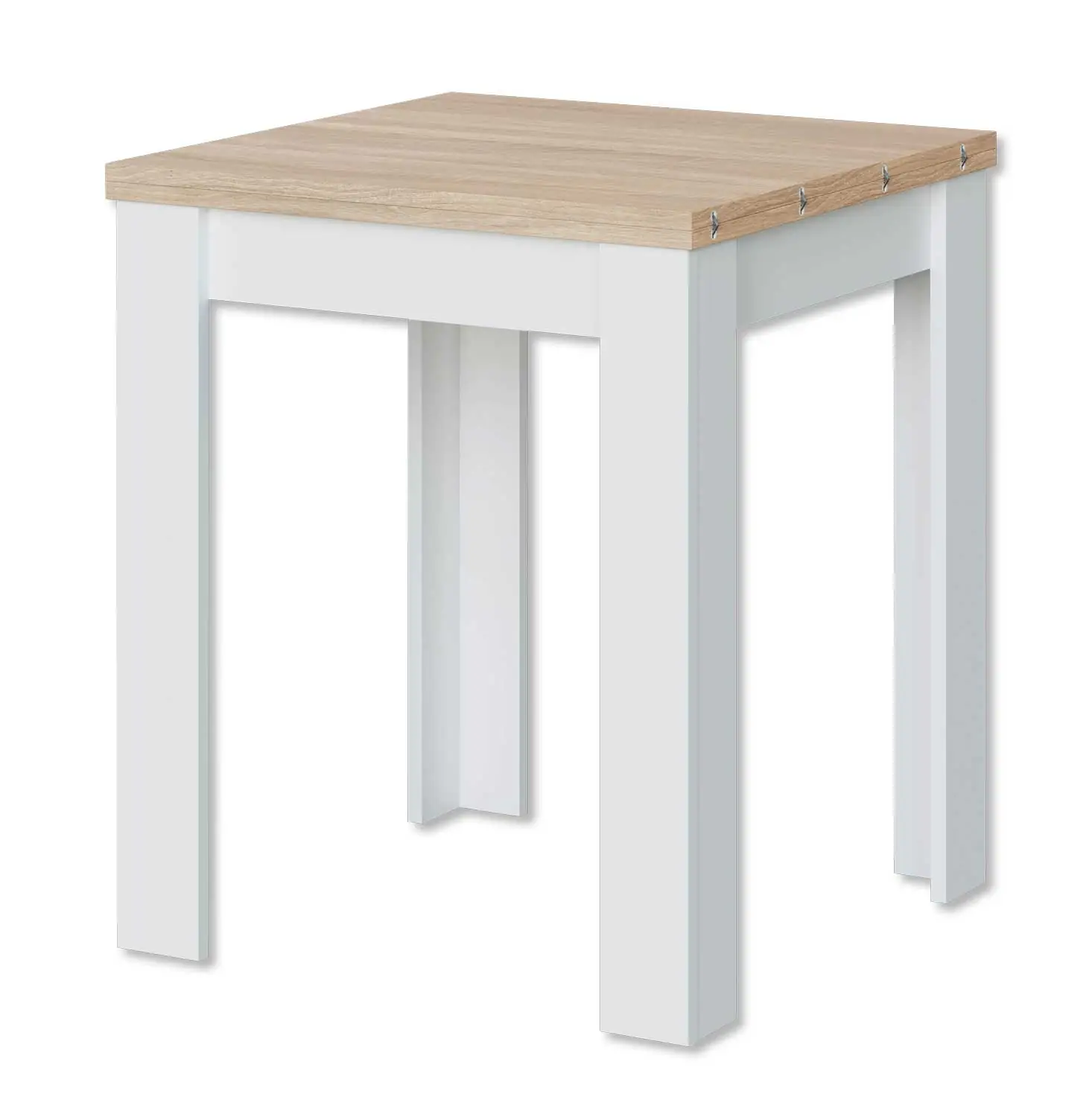 Questo tavolo rappresenta la massima espressione del mobile funzionale. Grazie al suo ingegnoso sistema di apertura a libro, raddoppia la sua superficie in pochi secondi, passando da un compatto tavolino quadrato a un comodo tavolo rettangolare per quattro persone.