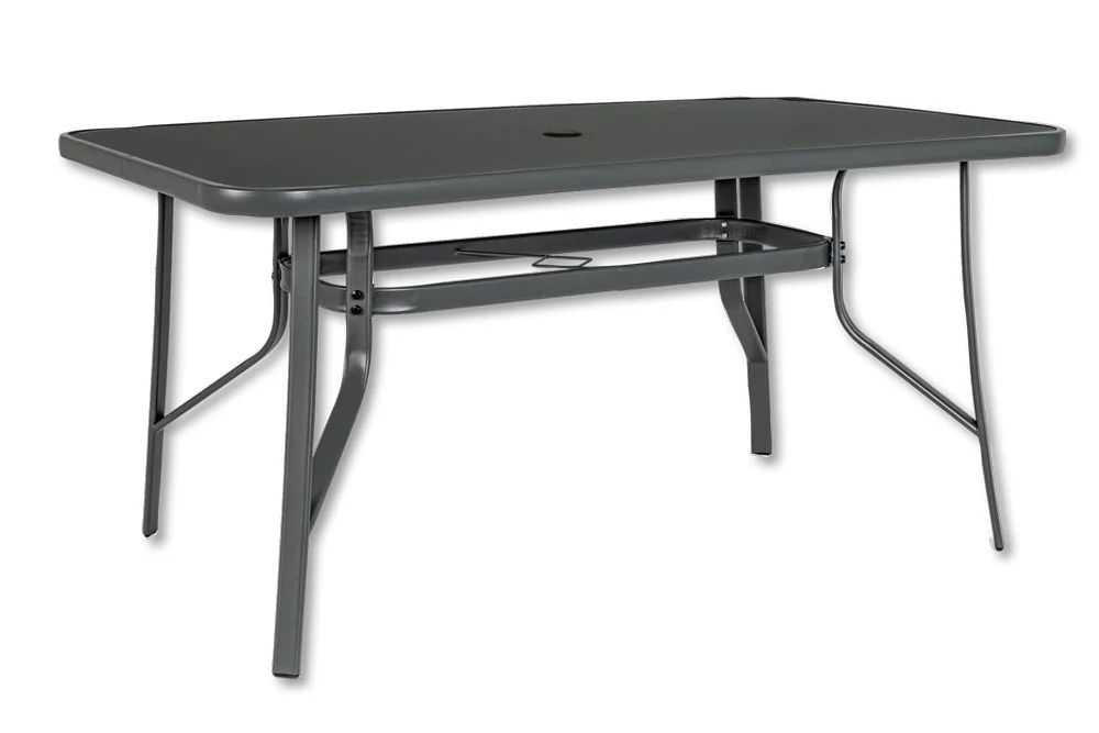 Con i suoi 150 cm di lunghezza, questo tavolo ospita comodamente 6 persone, offrendo una superficie ampia e facile da pulire grazie al top in vetro. La tonalità Antracite e il design essenziale lo rendono un arredo senza tempo, capace di adattarsi a giardini, porticati e grandi terrazzi.
