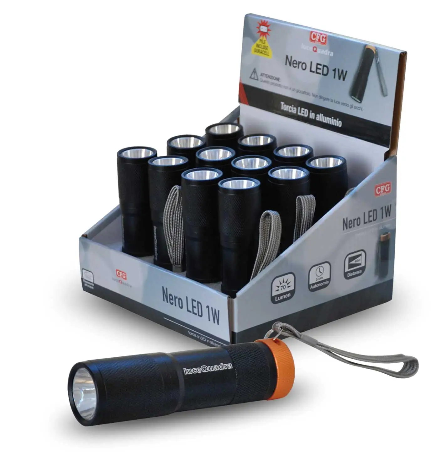 La Torcia LED in Alluminio 1 W è progettata per offrire illuminazione potente e durevole in un corpo compatto e resistente. Realizzata in alluminio di alta qualità, garantisce robustezza e lunga durata, rendendola ideale per attività outdoor, campeggio, emergenze o uso quotidiano.