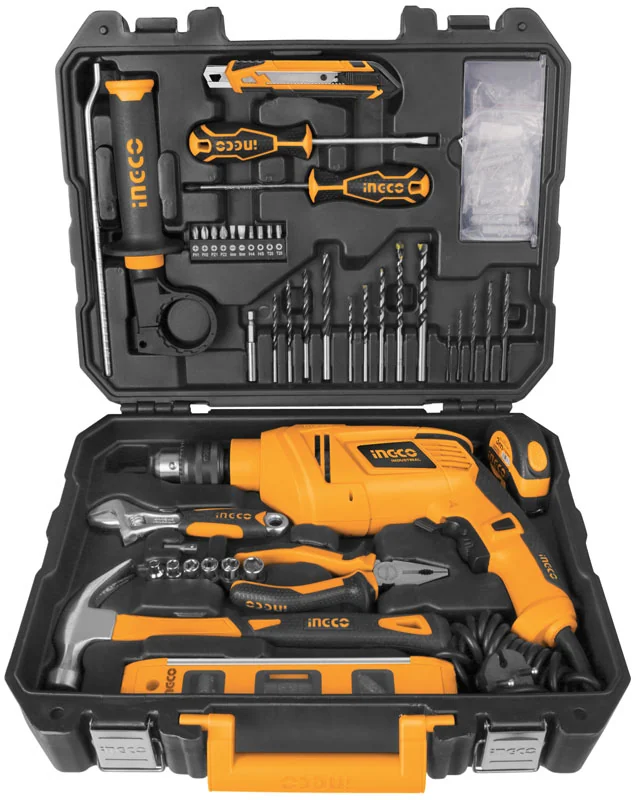 Set completo e versatile pensato per professionisti e hobbisti che necessitano di una dotazione pronta all’uso per lavori di foratura, avvitamento e manutenzione generale. Include un trapano da 850 W con chiave mandrino da 13 mm e una gamma completa di utensili manuali e punte per legno, metallo e muratura.